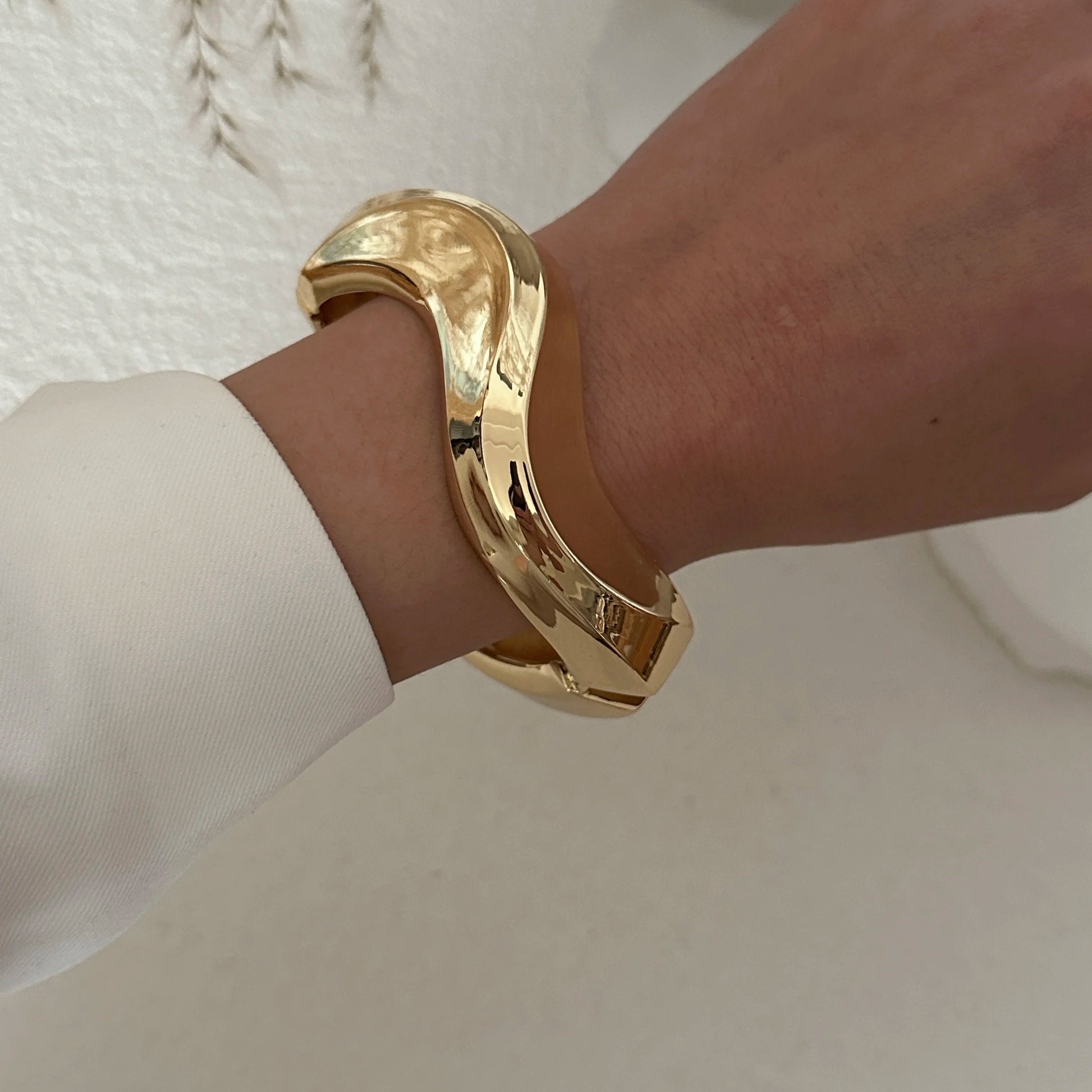 A bold collection of sculpted metal bracelets, blending modern design with timeless elegance. Perfect for statement looks, minimal outfits, or everyday luxury.